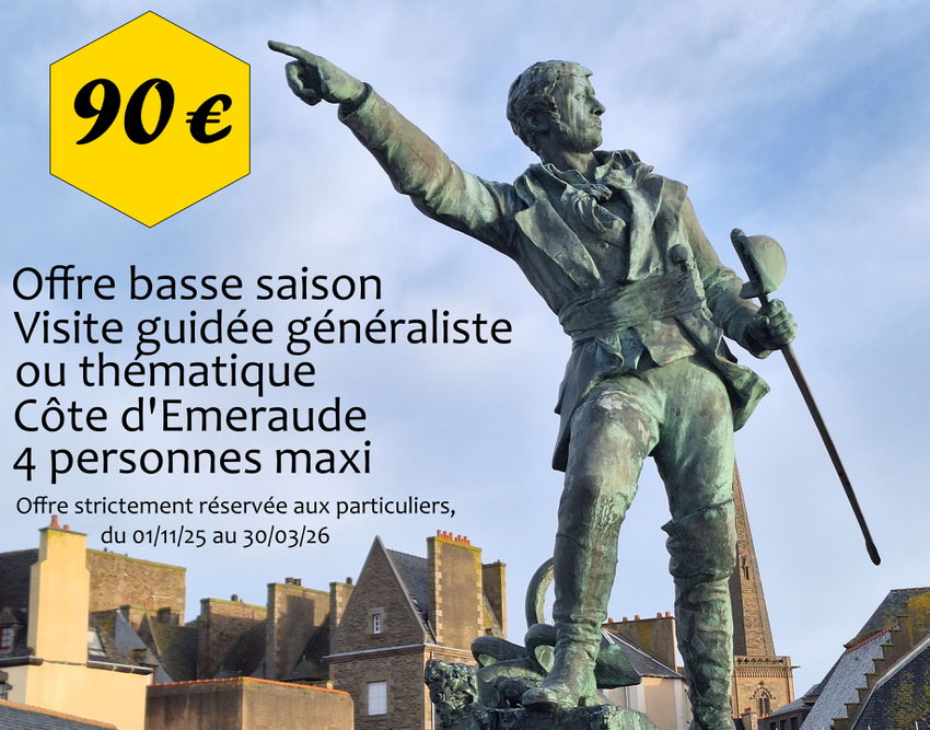 Frais de déplacement offerts pour Rennes, Saint-Malo et Dinard. Pour les visites guidées hors de Saint-Malo et Rennes, ajoutez mes frais de déplacement (0,30 € du km + repas éventuel).